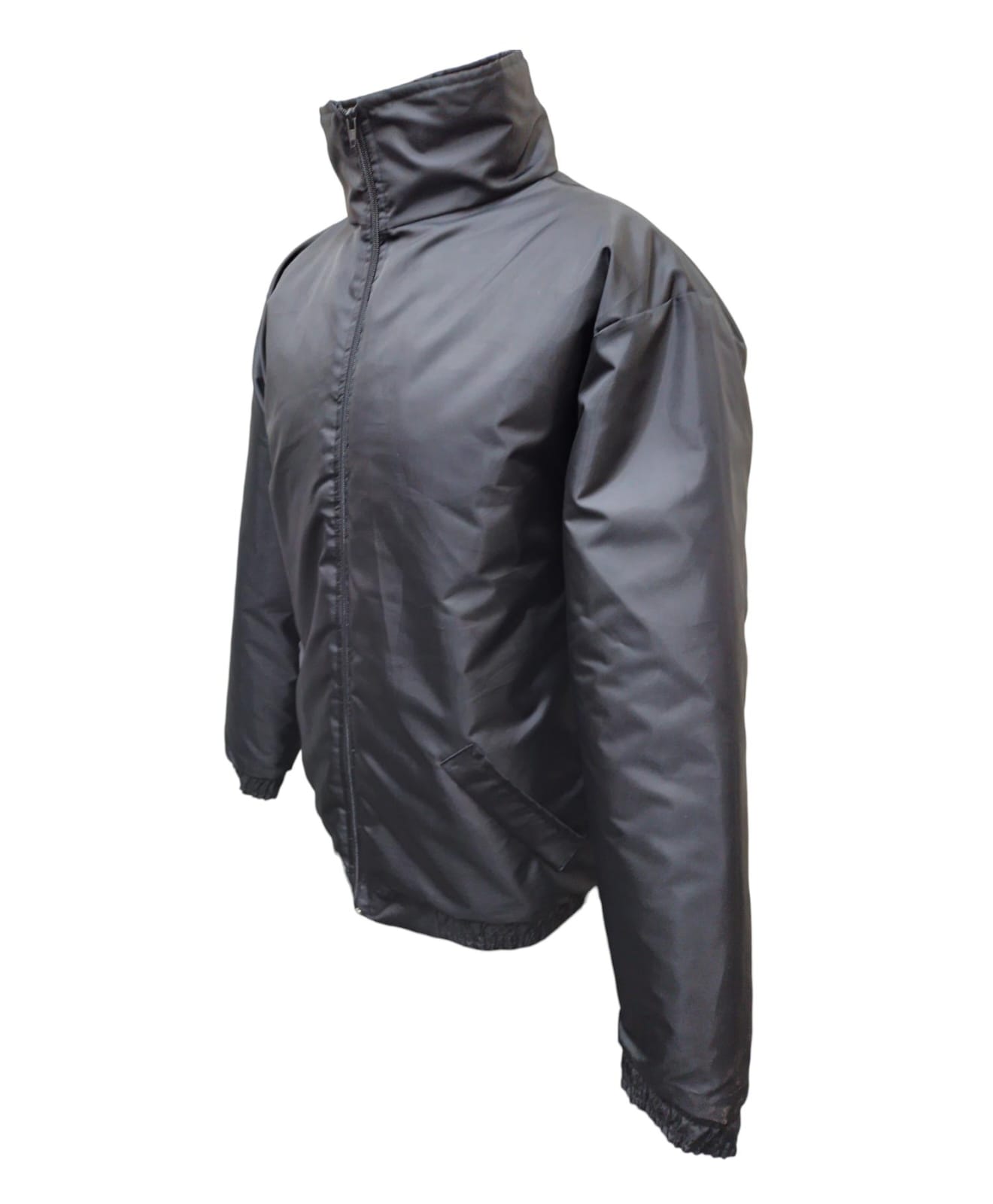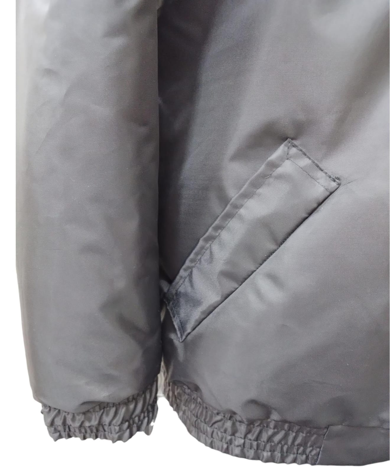 Jaqueta básica unisex, nylon resinado, paraquedas, punhos e barra com elástico, dois bolsos.